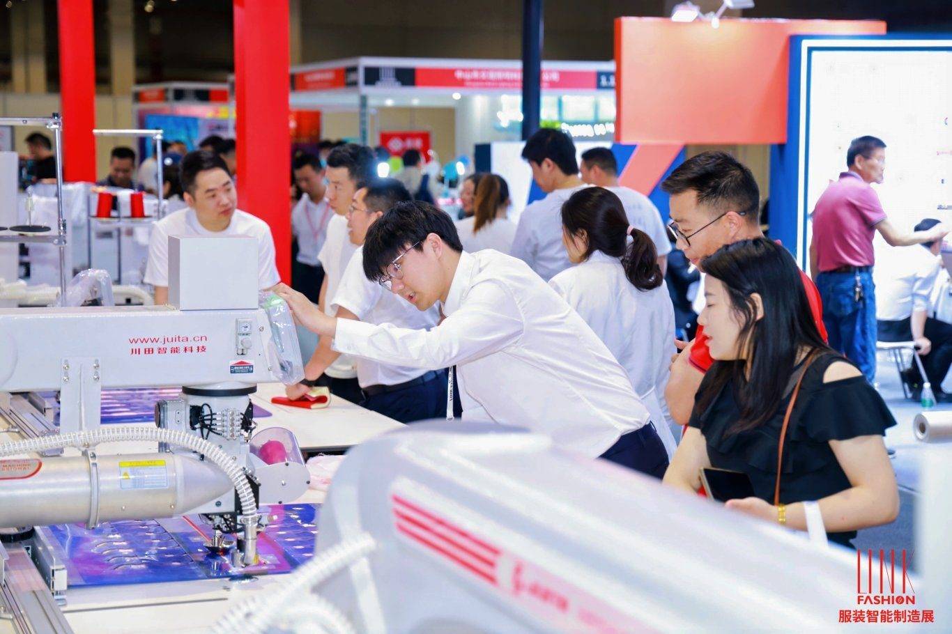 本届LINK·AME展由全联纺织服装业商会与上海灵硕展览集团联合主办,以“打造缝制设备全产业链直销平台”为主题,集商贸对接、品牌展示、新品发布、资讯交流、活动赛事于一体。展馆内,硬件与软件技术深度交织,形成多维度的技术矩阵:高精度缝纫设备、柔性机械臂、激光裁床等核心装备,突破传统工艺精度极限,实现毫米级针距控制、多层布料透视切割及复杂曲面缝纫;模块化智能产线单元适配大小批量柔性生产,凭“即插即用”敏捷制造能力,为不同行业需求提供定制化解决方案。