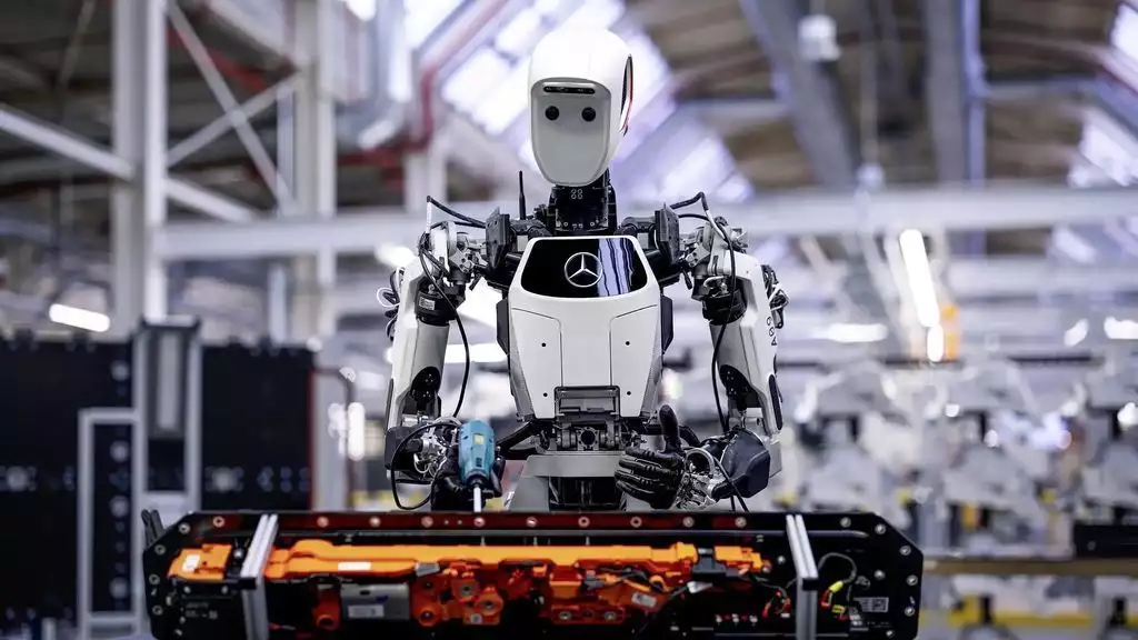 梅赛德斯-奔驰在其位于德国柏林-马里恩菲尔德的创新中心安装了由美国 Apptronik 公司开发的 AI 人形机器人。