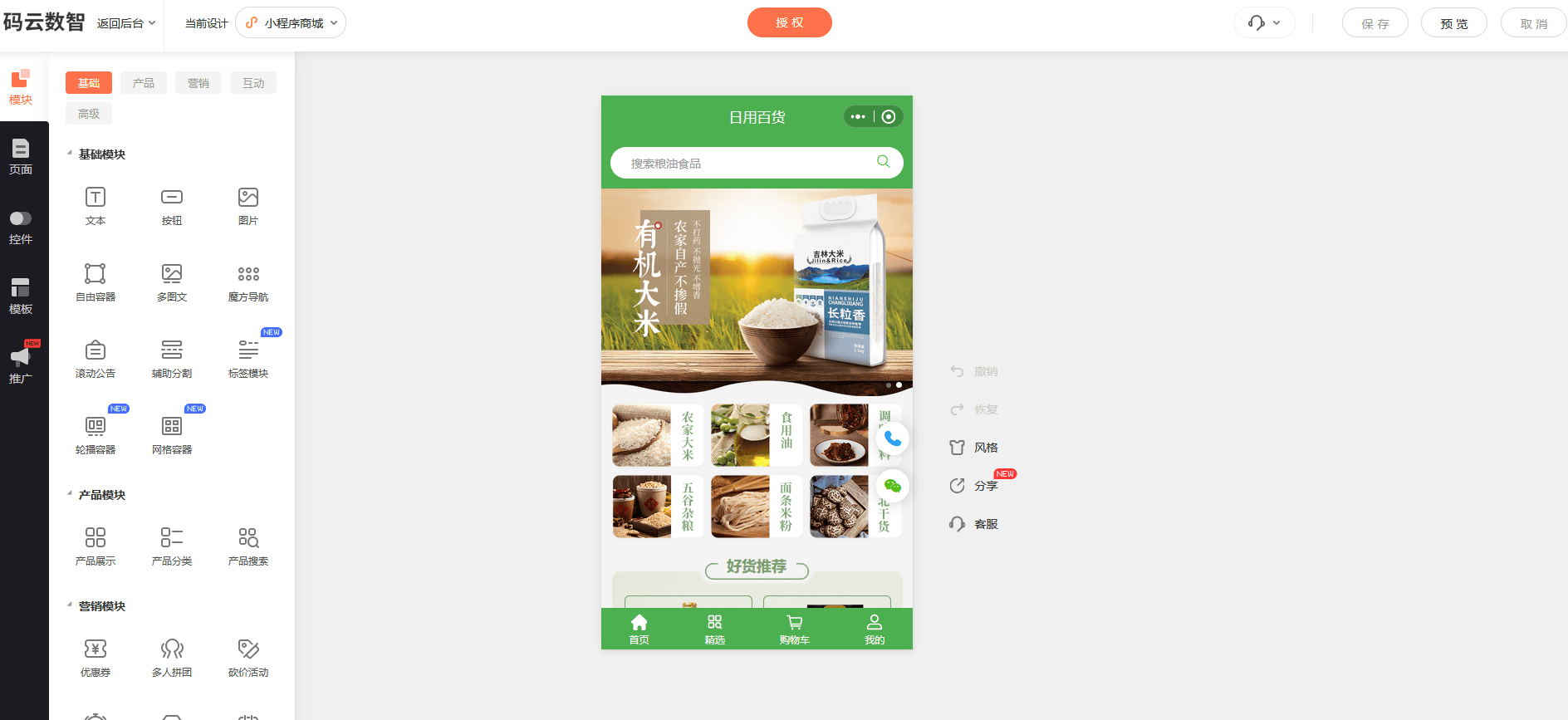 百度搜索【码云数智】,在【码云数智】平台注册账号,产品类型选择-商城