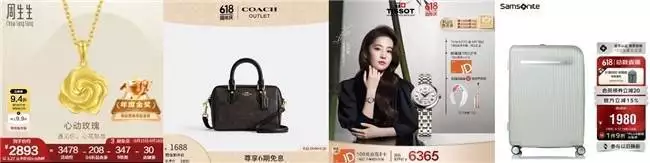 黄金珠宝、大牌奢品、腕表、箱包配饰等都是点缀穿搭的时髦好物。周生生爆款黄金低至7折,玫瑰花黄金吊坠造型时尚又保值; 蔻驰迷你波士顿单肩斜挎包,复古风十足,预估到手价仅需1688元; 天梭小美人系列女表,尊享白条12期免息,下单还赠智能颈椎按摩仪;新秀丽20英寸UF7行李箱,时尚外观搭配大容量空间,京东618期间立省1100元。