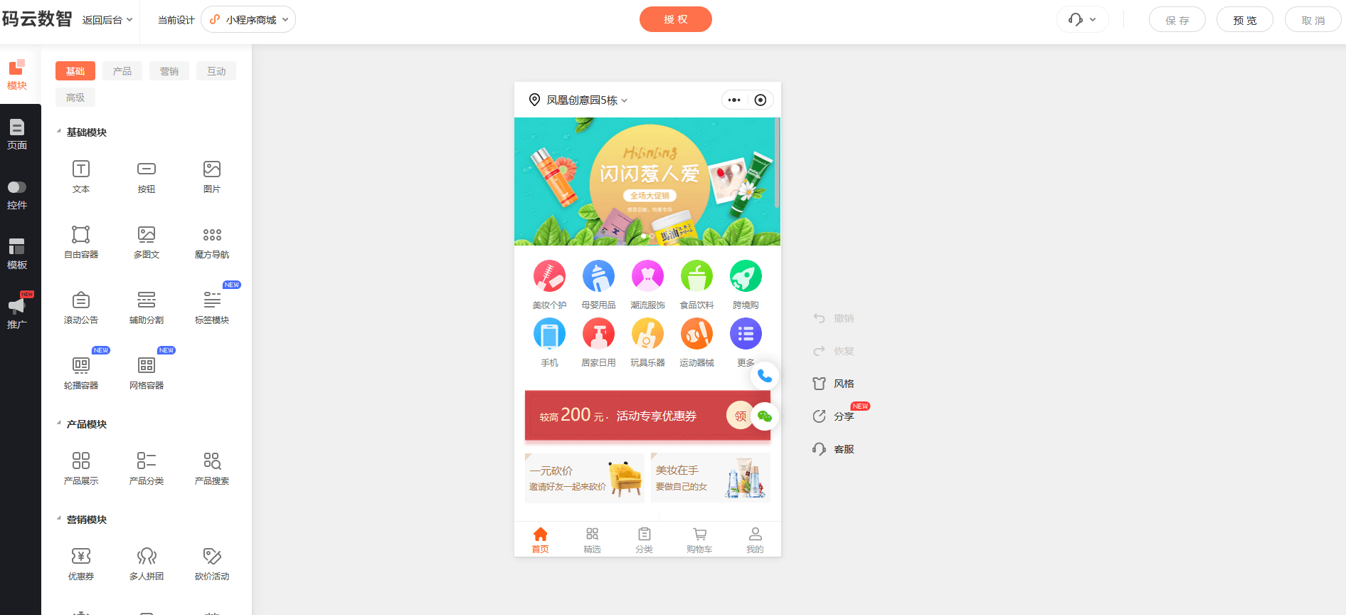 百度搜索【码云数智】,在【码云数智】平台注册账号,产品类型选择-商城