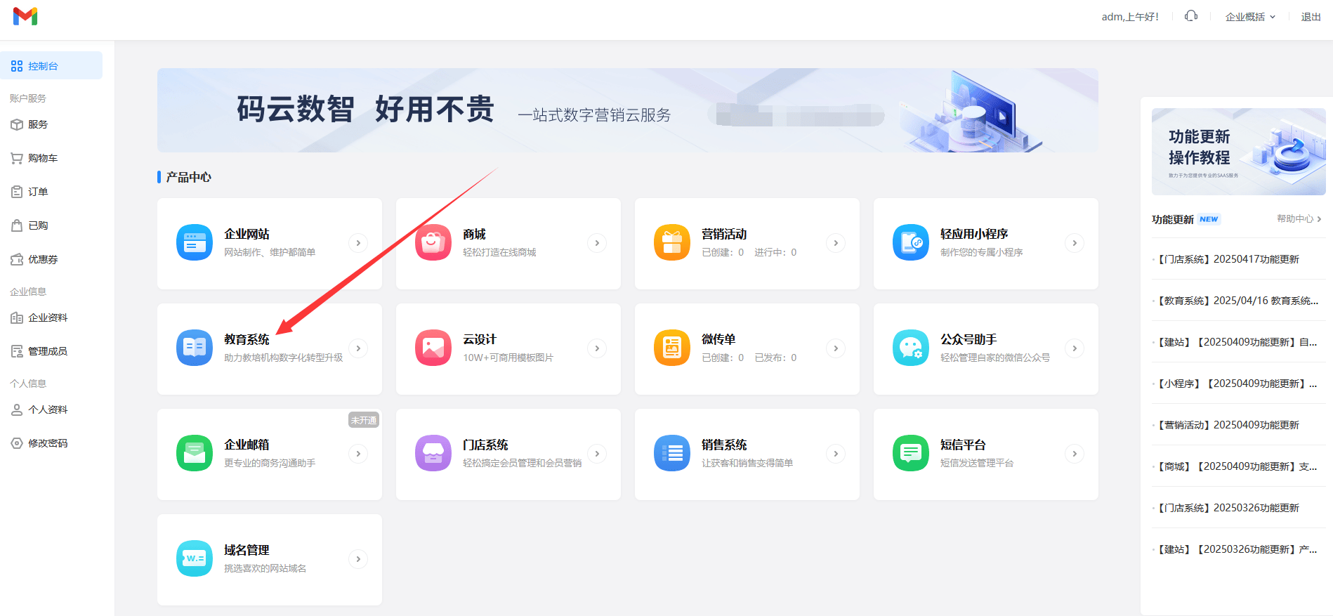 百度搜索【码云数智】,在【码云数智】平台注册账号,产品类型选择-教育系统