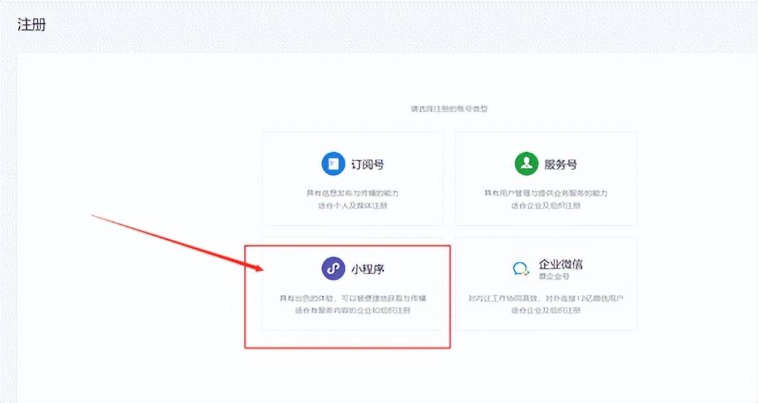 第五步:申请小程序账号