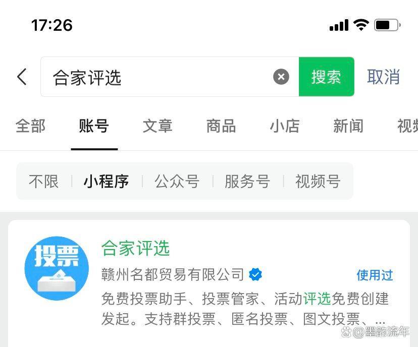 访问小程序:打开微信,点击 “发现”>“小程序”,在搜索框中输入 “合家评选”,找到并进入小程序。