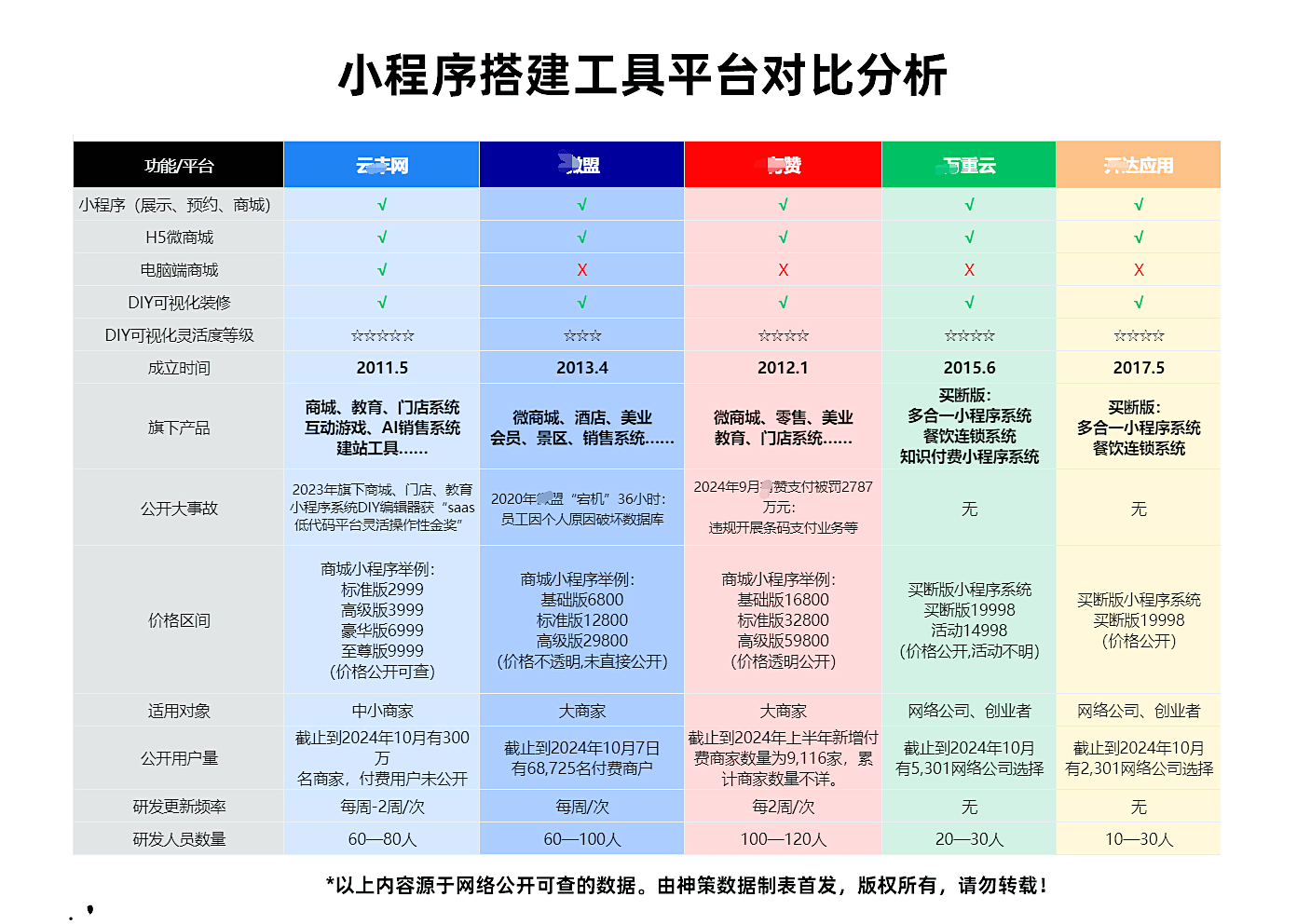 重点说下万重云!它和前面几家最大的区别是提供源代码买断服务,也就是说你买了之后,小程序的源代码直接给你,相当于“一次性买断终身使用权”,后续不用再交年费,也不用担心平台突然涨价或者停服,数据完全掌握在自己手里,安全性和自主性拉满!而且他们技术团队会帮你部署服务器、做定制开发,适合有技术团队或者想长期自主运营的企业,比如传统制造业、大型连锁品牌,想搭建私有化系统的选它很合适。