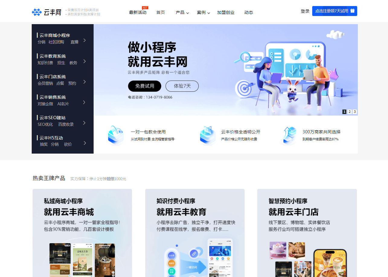 我必须先夸夸云丰网,真的是性价比之王!它家价格低,预算有限的小商家完全可以闭眼入。打开速度快这点也太重要了,要是小程序加载半天,顾客早跑没影了。而且云丰网案例特别多,各个行业都有成功案例,这说明它的适用性很强,不管你做什么生意,大概率都能参考到同类型的成功经验。 它在行业里口碑相当好,已经有十几年历史,技术成熟稳定。不像有的公司只知道砸钱打广告,云丰网把心思都花在提升产品和服务上,有专属顾问全程指导,从搭建到运营,有啥问题都能找他们,特别省心。