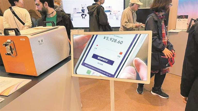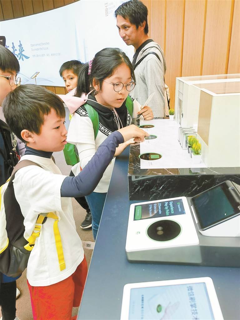 在世博会展区,游客体验微信刷掌。 (腾讯供图)