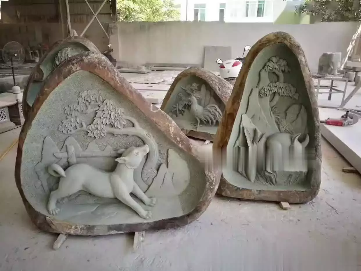 根据设计图纸,雕刻师傅开始对石材进行粗雕。此时,雕刻师傅会用锤子、凿子等工具,将石材大致打磨成所需的形状。石雕十二生肖的形象大多以立体雕刻为主,因此,雕刻师傅要特别注意动物的姿态和表情,确保其形象生动、逼真。