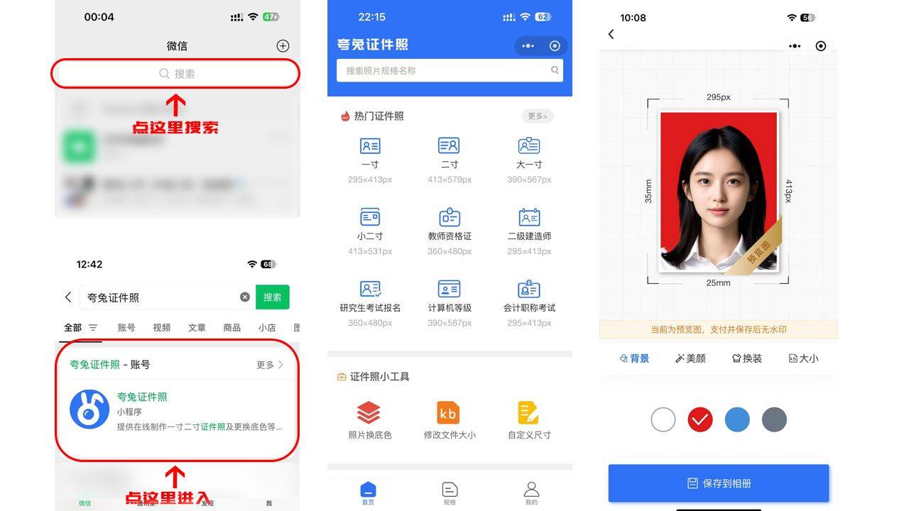 通过夸兔证件照小程序制作证件照,不仅省去了前往照相馆排队的麻烦,还能在家轻松完成高质量的证件照制作。整个过程简单明了,无需专业技能,只需按照提示操作即可。无论是临时急需还是日常备用,夸兔证件照小程序都能为你提供高效、便捷的解决方案。如果你还在为证件照发愁,不妨试试这款小程序,让你的证件照制作变得更加轻松愉快!返回搜狐,查看更多