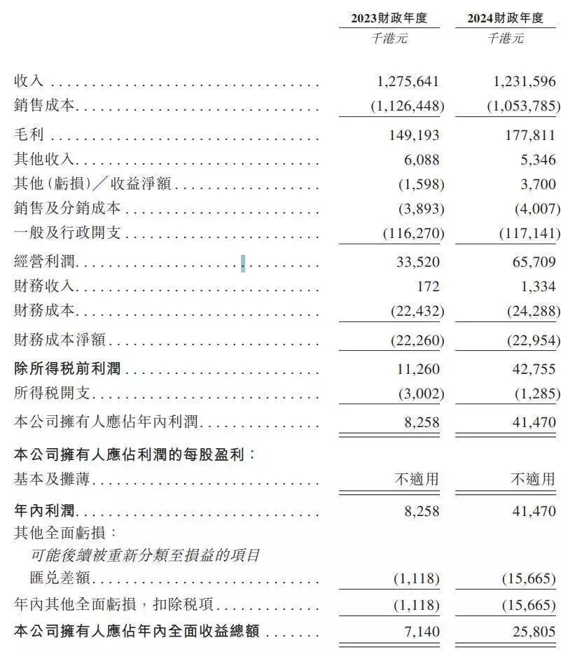 财务方面,2023财年、2024财年,祥康控股实现收入分别约为人民币12.76亿元、12.32亿元,毛利分别约为人民币1.49亿元、1.78亿元,年内利润分别约为人民币825.8万元、4147万元。