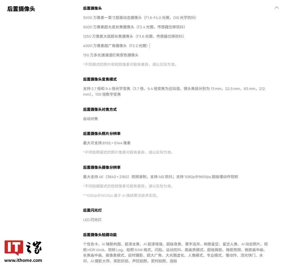 IT之家从华为官网获悉,Pura 80 Ultra 手机“一镜双目”超大底双长焦镜头(含 5000 万像素超大底长焦摄像头、1250 万像素大底超长焦摄像头)支持 3.7 倍和 9.4 倍光学变焦(3.7 倍、9.4 倍变焦为近似值,镜头焦段分别为 13 mm,22.5 mm,83 mm,212 mm)、100 倍数字变焦。