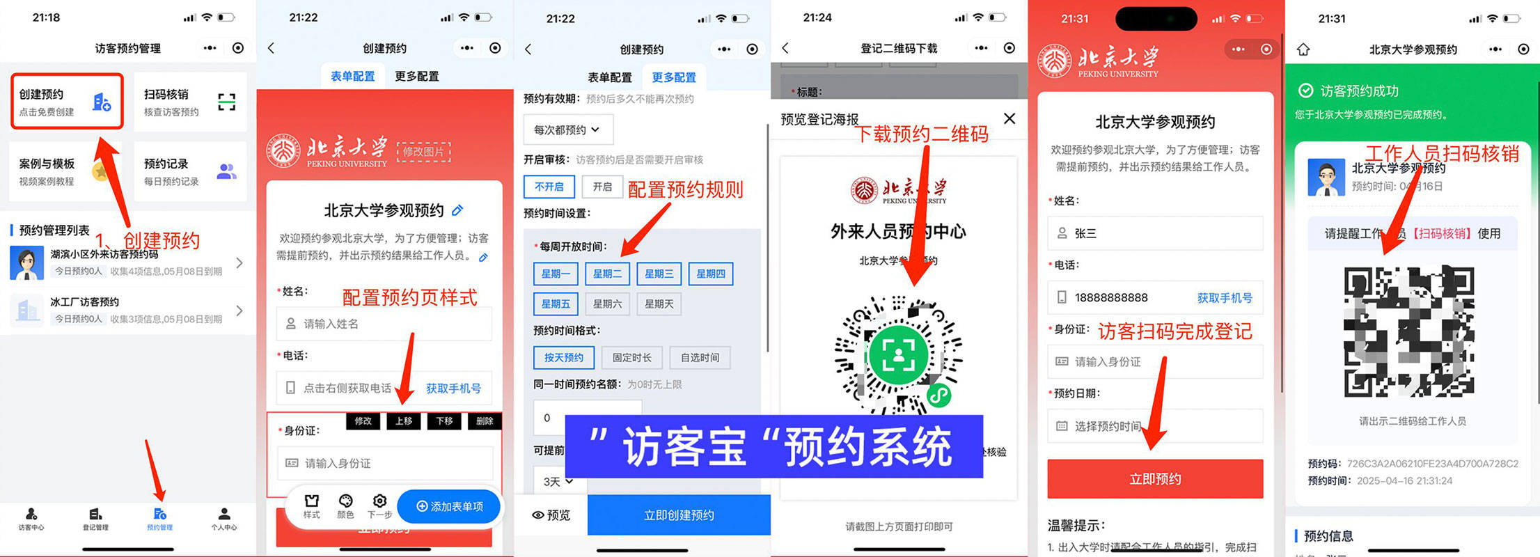 或者复制链接或者配置到公众号 - 访客提前完成预约 - 管理现场扫码核销即可。