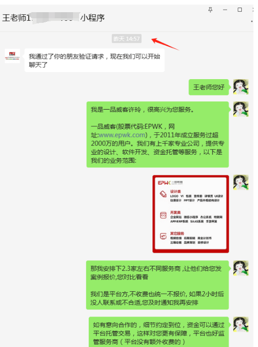 后来,王老师听闻了一品威客网这个平台,抱着试一试的心态在上面发布了项目需求。任务顾问在收到需求后,迅速联系了王老师进行了详细的需求梳理。凭借平台丰富的服务商资源和精准的匹配机制,隔天王老师就收到了多家开发服务商的方案和报价。经过一番沟通和比较,王老师很快就找到了合适的开发服务商北京锐意天行科技有限公司,并顺利达成了合作。整个过程高效快捷,让王老师不禁感叹:“没想到这么容易就解决了大问题,一品威客网真是太靠谱了!”