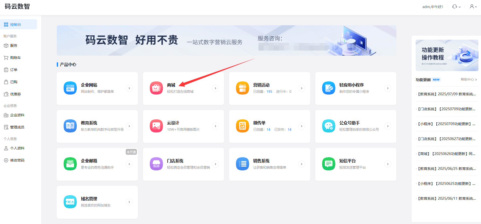 百度搜索【码云数智】,在【码云数智】平台注册账号,产品类型选择-商城