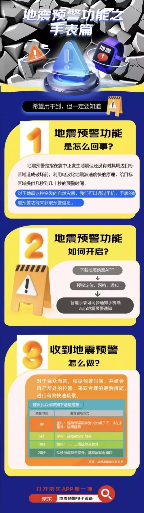 3月26日1时21分,河北省廊坊市永清县发生4.2级地震,震源深度20公里。河北、北京、天津等地网友表示有震感,由于地震发生在凌晨,不少网友表示是被手机的地震预警叫醒,相关话题也登上热搜。如今,不少品牌的手机都带有地震预警功能,通过弹窗和警报声告知用户震中、预警震级、预警时间、预估烈度等地震预警信息,方便用户及时反应和避险,提供更多安全保障。如果你还不知道怎么开启地震预警功能,来京东APP搜索“地震预警电子设备”,快速了解各大品牌手机、智能手表地震预警设置方式。
